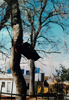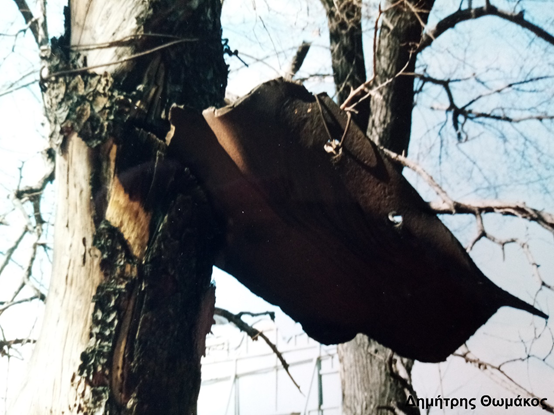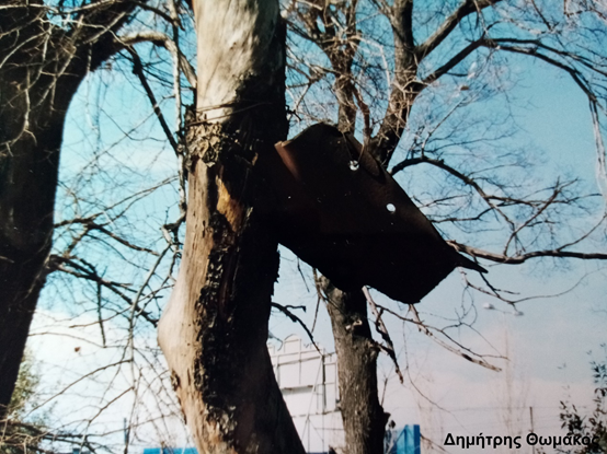 Φωτο: Λαμαρίνα καρφωμένη σε δέντρο στον Τινάνειο κήπο του Πειραιά (Δημήτρης Θωμάκος)