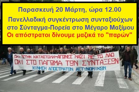 Σύνταγμα, 20 Μάρτη ώρα 12.00. Πανελλαδική συγκέντρωση συνταξιούχων. 15 Μαρτίου 202615 Μαρτίου 2026 Κίνηση Αποστράτων ΑστυνομικώνΝέα-Ενημέρωση